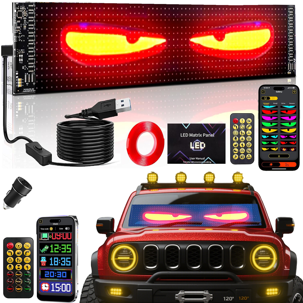 2Pcs LED Eyes for Truck Windshield,Devil Eyes Light for Cars,Flexible Scrolling Programmable LED Signs,Custom Editor Colours,Animations,Text