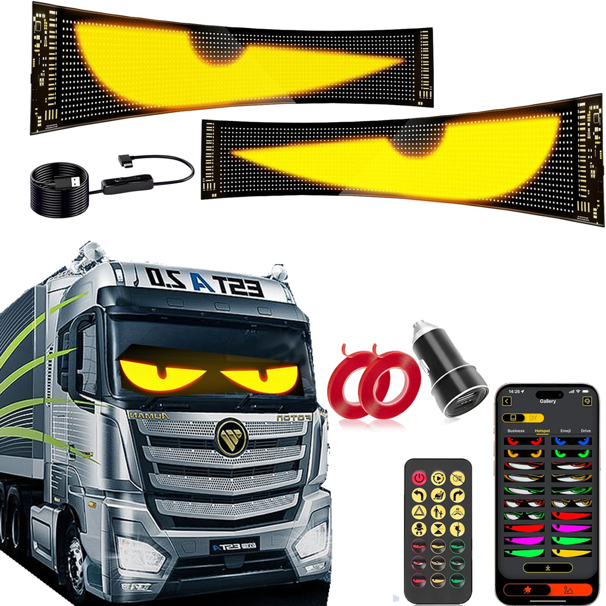 APP Control Flexible LED Car Display Panel,Devil LED Eyes For Heavy-Duty Truck,Programmable Custom Text Images Animations for Taxi Truck Windshield Advertising