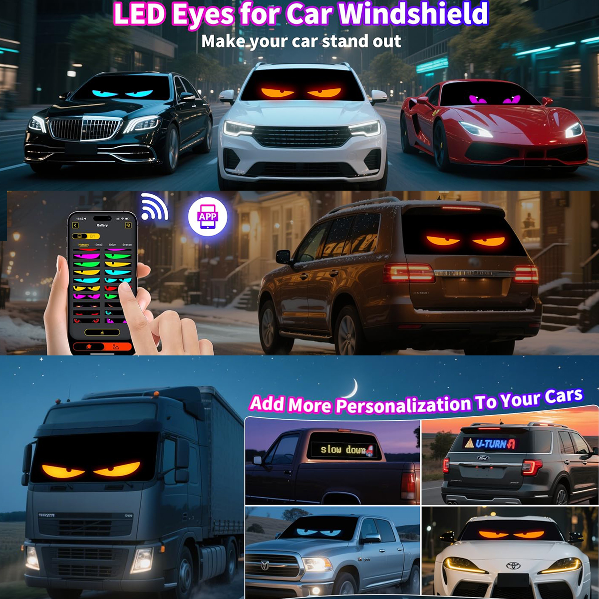 - Smart App and Remote Control: LED disply can realize simple animation directly through the remote control to support to connect multiple led display at the same time. The LED signs for car makes it easier for you to customize interesting patterns and texts, and the music mode. The app has a large number of preset animations and patterns built into it, and you can DIY text, patterns, and even animations. You can adjust the brightness and speed to meet your needs perfectly. It’s fun to play and easy to operate