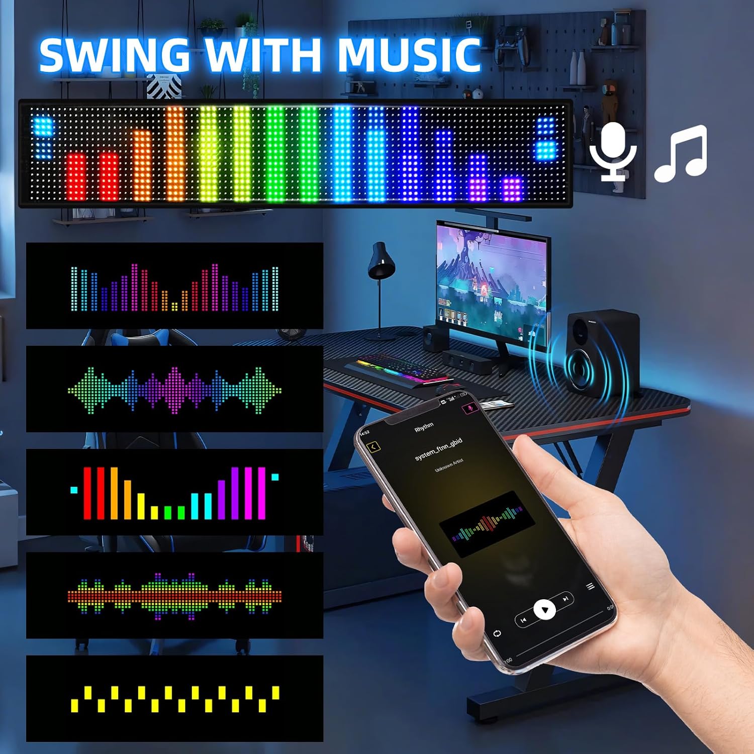 - Smart App and Remote Control: LED disply can realize simple animation directly through the remote control to support to connect multiple led display at the same time. The LED signs for car makes it easier for you to customize interesting patterns and texts, and the music mode. The app has a large number of preset animations and patterns built into it, and you can DIY text, patterns, and even animations. You can adjust the brightness and speed to meet your needs perfectly. It’s fun to play and easy to operate