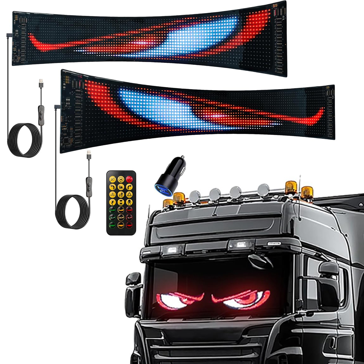 - 【Programmable LED Sign – Light Up Your Creativity】Control via Bluetooth with our app (iOS/Android compatible), content anytime whether devil eyes, dynamic patterns, or custom logos. Turn your vehicle into a unique DIY light show with these truck eyes lights windshields