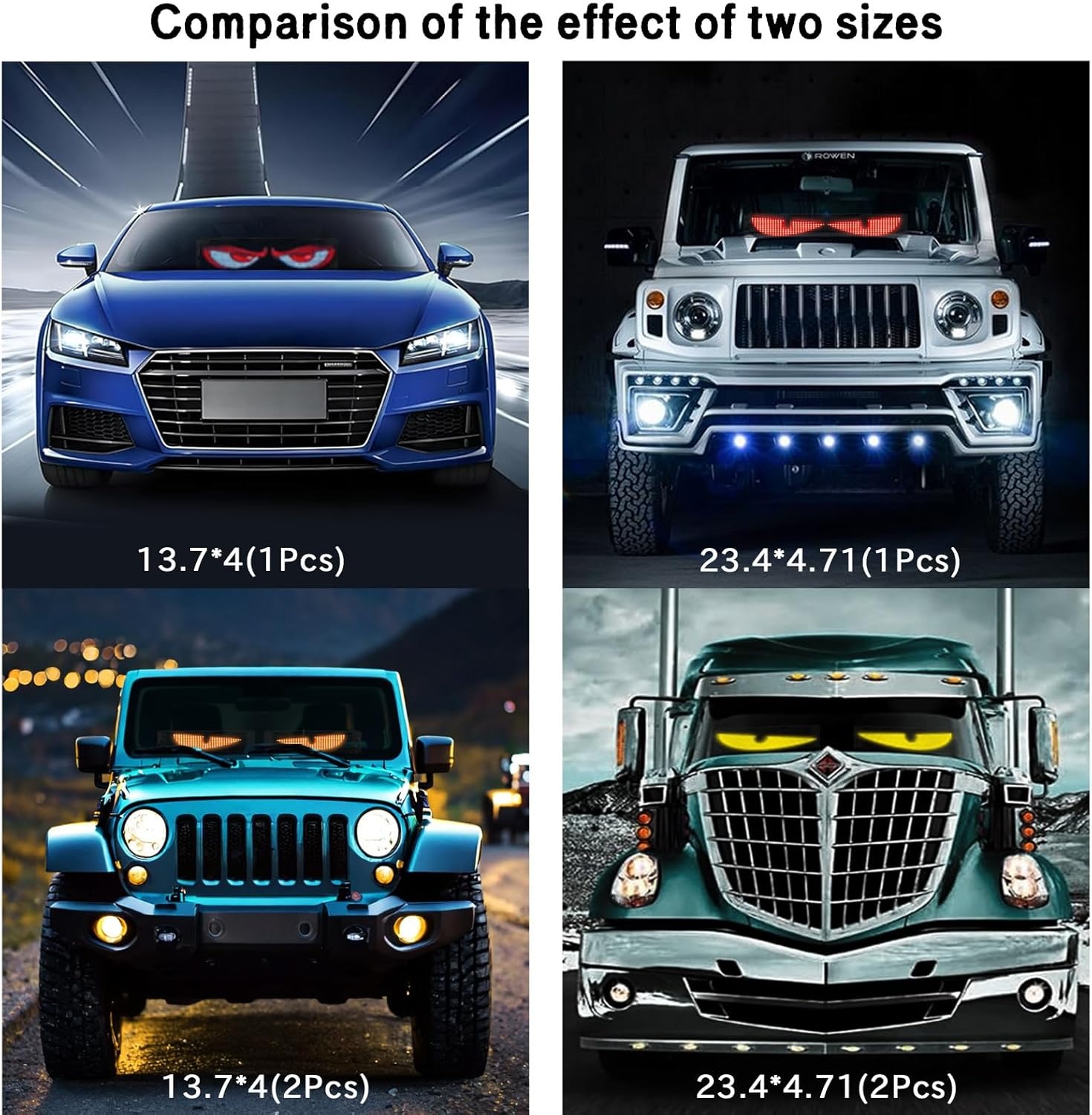 - Multi-Scene Dynamic LED Car Eyes – Instantly elevate a car, bar or wedding with over 20 preset effects and custom programming. Low-power 0.5W design runs 24/7 on power banks. Choose static/dynamic modes for proposals, holidays (Halloween/Christmas), or business ads. Removable adhesive ensures zero damage – reuse on any surface!