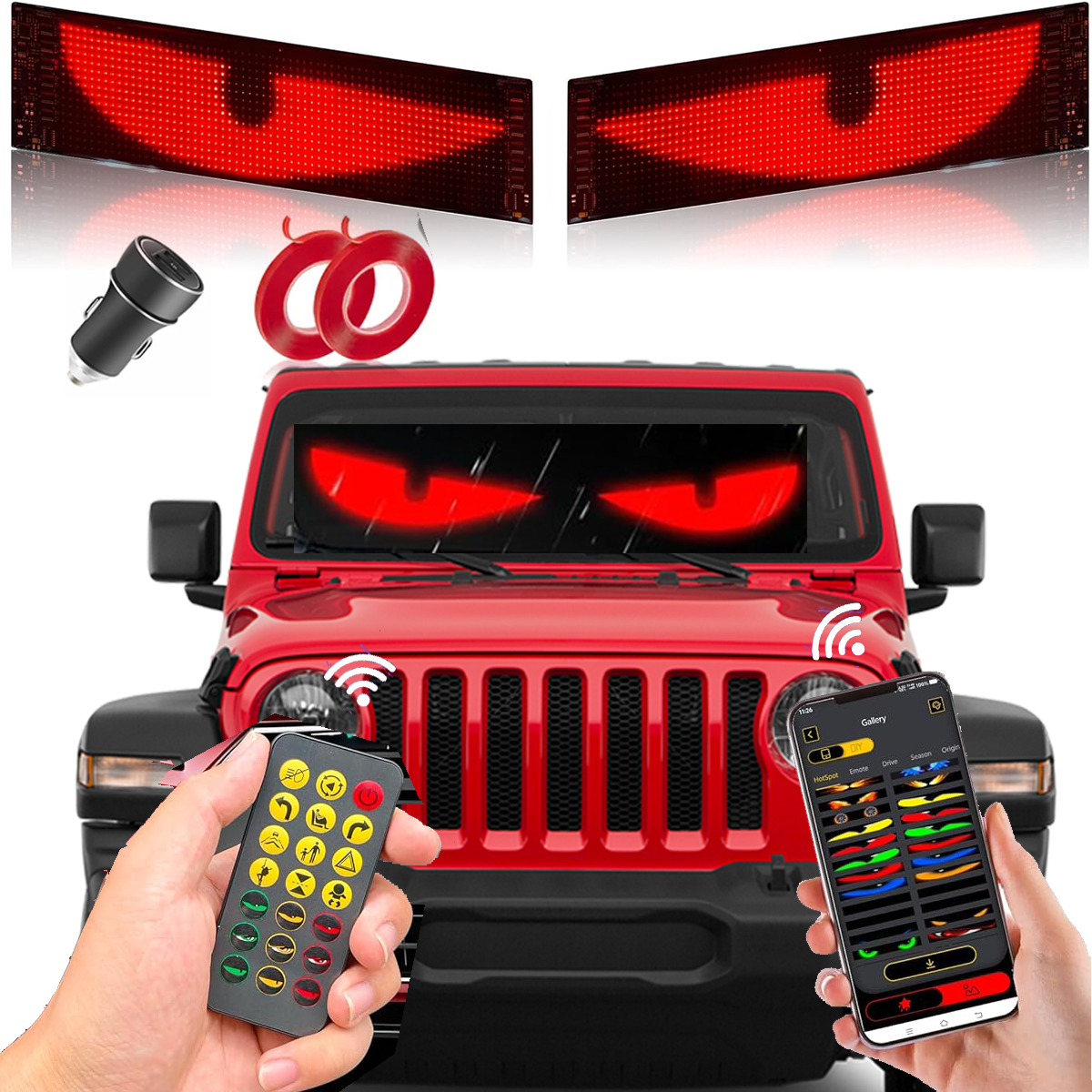 USB5V Led Devil Eyes Light for Windshield For Truck Truck, Programmable LED Signs with APP & Remote Control,Digital Lighting Display,LED Eyes for Cars,SUVs & Trucks (1 Pcs/2PCS)